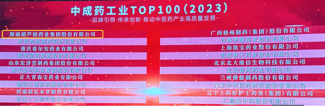 会上,还发布了“2023中成药工业TOP100”榜单,3522vip浦京集团药业集团荣耀上榜。